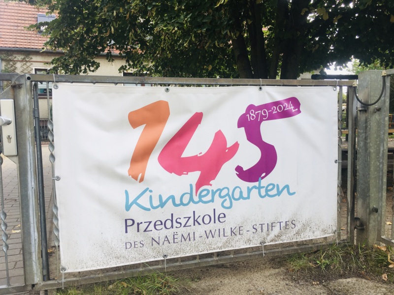 Die Kindertagesstätte im Naëmi-Wilke-Stift wurde 1879 gegründet. Sie ist die älteste staatlich anerkannte Einrichtung in freier Trägerschaft in der Stadt Guben im Landkreis Spree-Neiße. Zur Verfügung stehen 99 Plätze für Kinder von der Geburt bis zum Schulbeginn. Derzeit besuchen 56 Kinder die Einrichtung. Bis Juni 2026 soll die Zahl der Kinder auf 67 steigen. Die Kinder werden von 12 pädagogischen Fachkräften betreut, darunter eine polnischsprachige Erzieherin, was laut der Kita-Leiterin sehr wichtig und notwendig ist, da etwa ein Drittel der betreuten Kinder aus Polen stammen.
