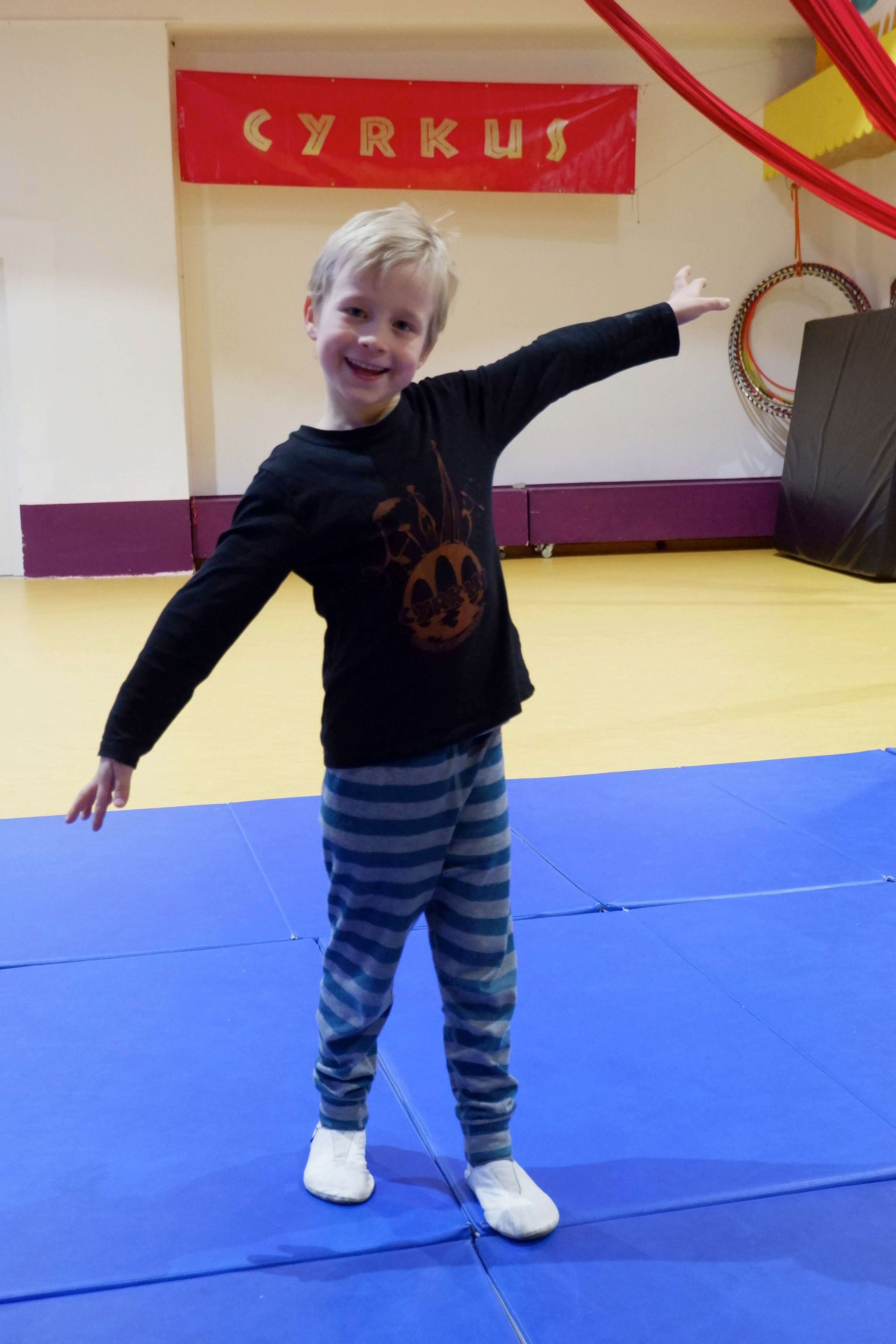 Alwin (6 Jahre) aus Görlitz ist einer unserer Teilnehmenden beim CYRKUS-Spiel. Hier lernt er bei Nicole, was es für Zirkusmaterialien gibt und wie man den Körper dabei einsetzt. Er besucht als Kindergartenkind seit zwei Jahren den CYRKUS-Laden, weil er hier Freunde hat und er immer wieder etwas Neues ausprobieren kann, sagt er überzeugt.