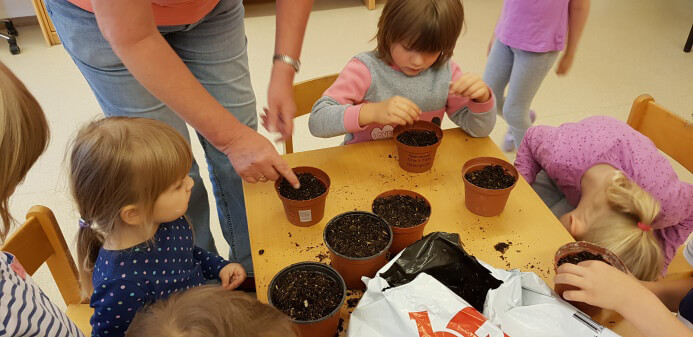 Obwohl ich noch nicht wieder in jede der fünf Einrichtungen gehen kann, die ich begleite, versuchen wir miteinander in Kontakt zu bleiben. Per Post bekommen die Kindern Briefe und ein Angebot von mir, welches zum Beispiel von den Kindern der Kita in Deschka umgesetzt wurde. Sie haben die LaNa-Blumen gebastelt und im Garten verteilt. Viel Freude hatten die Kinder der Einrichtung „Zum Heiligen Schutzengel“ die gemeinsam Sonnenblumen gesät haben.