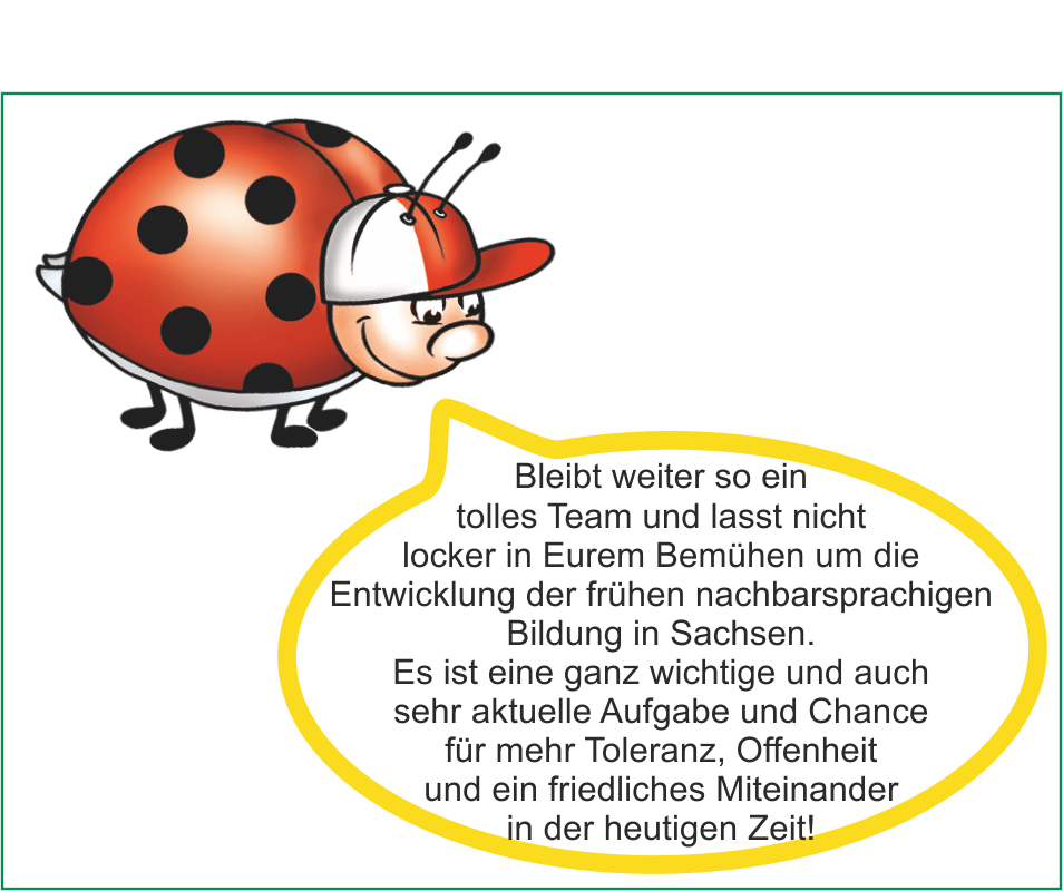 Wir sind alle mit viel Herzblut dabei und entwickeln immer wieder gemeinsam neue Ideen und Ansätze, um unser Thema „Nachbarsprache von Anfange an!“ in Sachsens Grenzregionen voranzubringen – auch wenn das oft nicht einfach ist und immer wieder Hürden überwunden werden müssen. Und wir haben viele, viele engagierte Partner aus verschiedensten Bereichen und Regionen, mit denen wir sehr gut zusammenarbeiten – das ist sehr wertvoll für uns und dafür schicken wir sehr gern heute auch im Namen des gesamten LaNa-Teams ein großes Dankeschön an alle unsere großen und kleinen LaNa-Freunde in Nah und Fern.