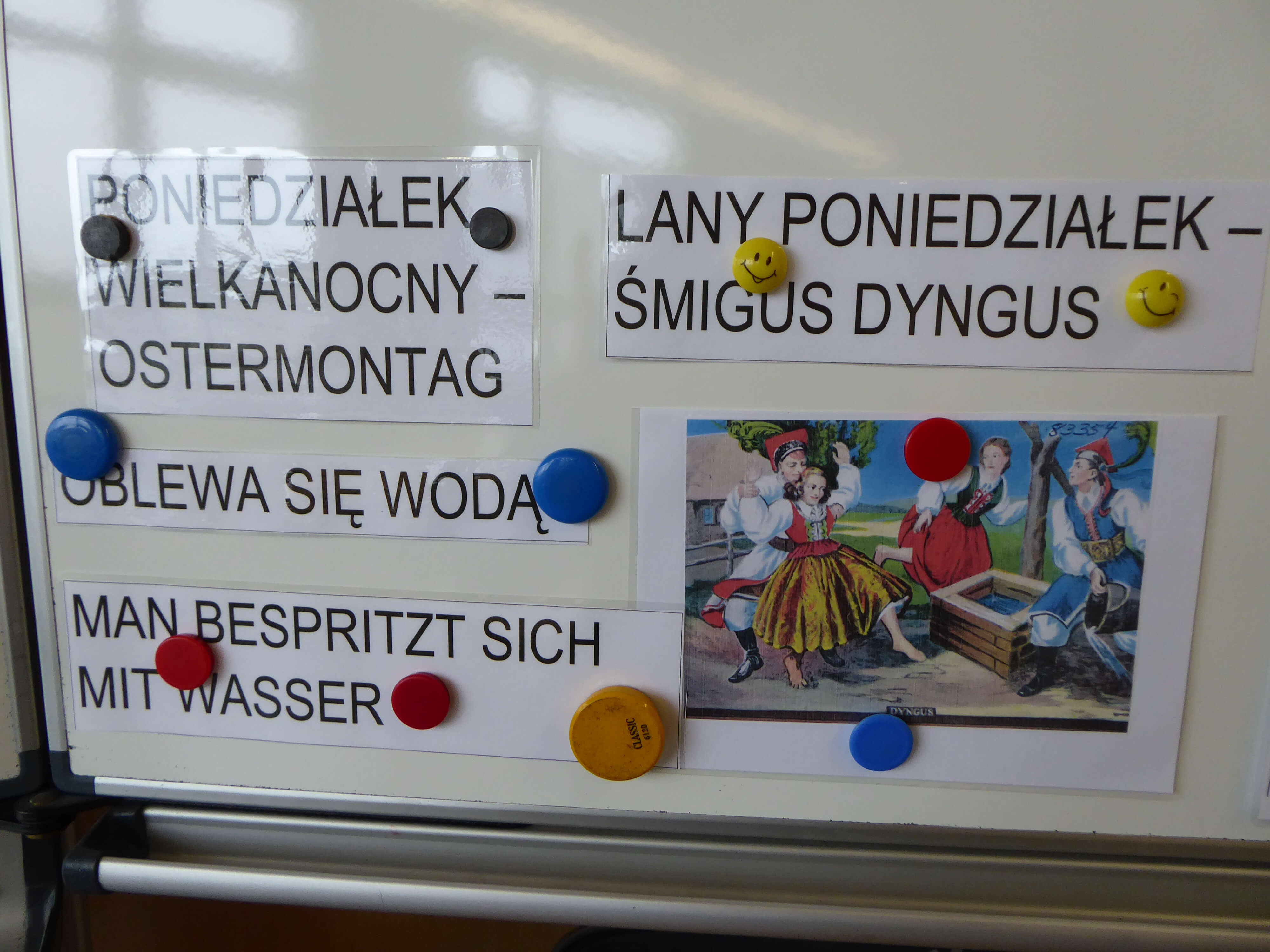 Der Seminartag startete dann mit einer Vorstellung der Sitten und Bräuche rund um das Osterfest in Polen. Frau Brückner, Fachlehrerin für das Unterrichtsfach Polnisch und selbst gebürtige Polin, konnte den Schülerinnen und Schülern viel Interessantes, wie z. B. die Tradition der Speisensegnung am Ostersamstag in der polnischen Kirche, berichten.
