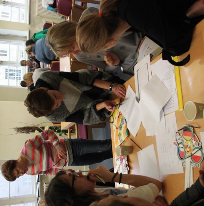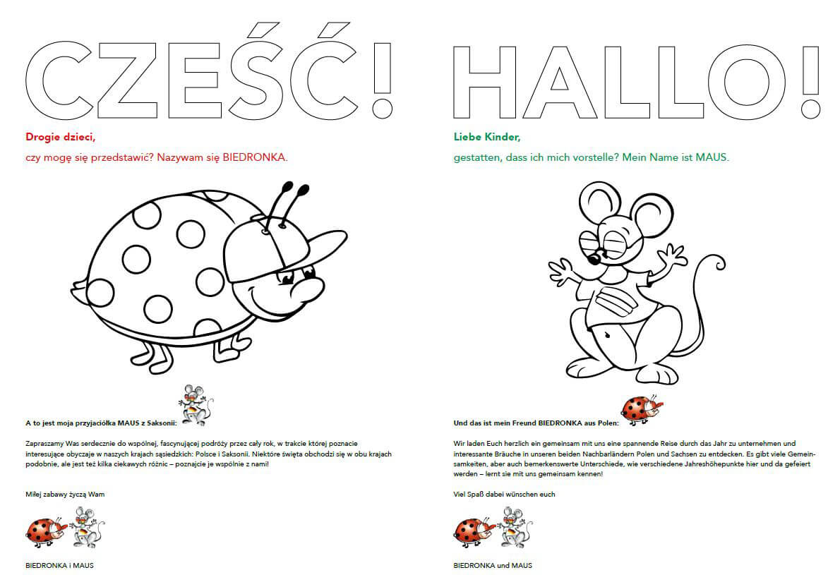 Der Pilotkurs bietet den ErzieherInnen die Möglichkeit der Entwicklung und Verbesserung ihrer methodischen und interkulturellen Kompetenzen, um entsprechende Angebote wirkungsvoll in den Kita-Alltag zu integrieren. Dazu gibt es viel Raum, damit sich die Teilnehmenden des Kurses über den Arbeitsalltag in den Kitas austauschen können. In deutsch-polnischen Arbeitsgruppen entwickelten sie gemeinsam erste spielerische Herangehensweisen, um Kindern Sprache, Land und Leute des Grenznachbarn näher zu bringen. Daraus wird nun eine deutsch-polnische Handreichung für die Kita-Praxis entstehen, die dann auch von anderen Kitas genutzt werden kann. Außerdem wird gerade ein Malbuch mit interkulturellen Motiven von Festen und Bräuchen des ganzen Jahreskreises, stets begleitet von Biedronka und Maus, erarbeitet Die Bilder werden mit kurzen zweisprachigen Texten erklärt. Kinderleichtes Kennenlernen der eigenen und der Nachbar-Kultur stehen immer im Vordergrund.