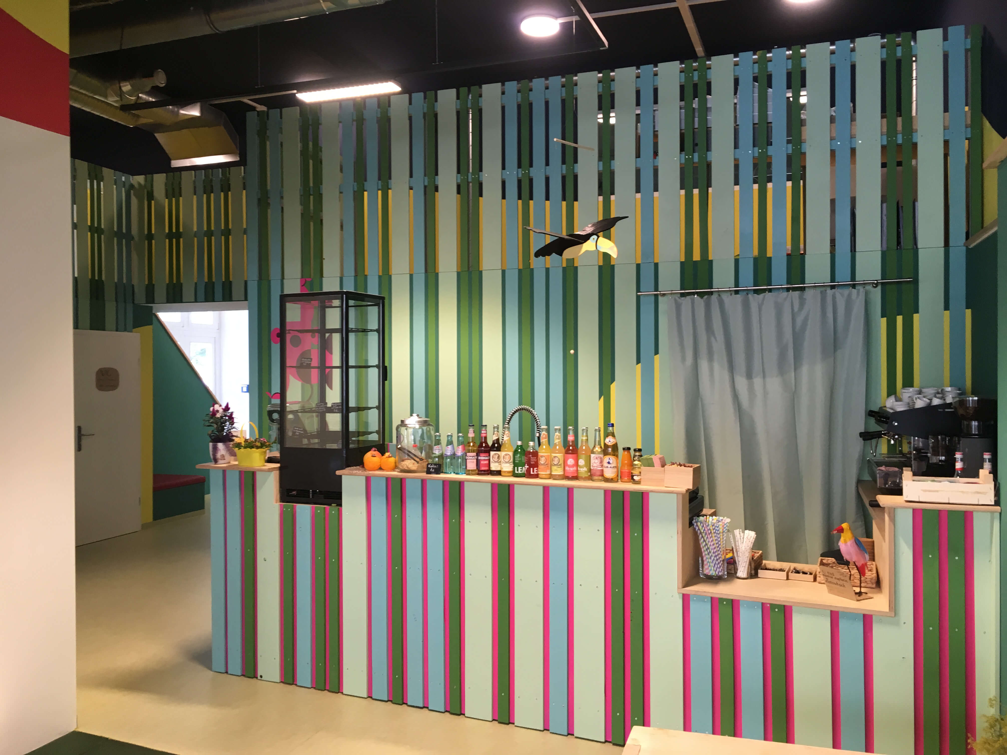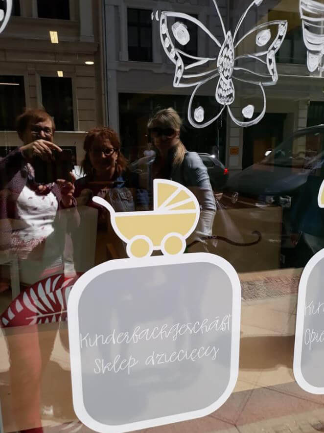 Angekommen bei Jakobs Enkel auf der Jakobstraße 5a in Görlitz lädt schon das Schaufenster zum Stehen bleiben ein, denn dort kann man lesen, was drinnen entsteht und entstanden ist: Eltern-Kind Coworking/ dla rodziców z dziecmi, Bewegungsraum/Sala sportowa, Eltern-Kind Café/ Kawiarnia dla rodziców i dzieci, alles zweisprachig deutsch-polnisch lesbar. Die durchdachten Räume enthalten umfangreiche Spiel- und Klettermöglichkeiten, einen gemütlichen Sitzbereich, ein Café, in dem zwei deutschsprechende Polinnen voller Liebe bedienen, ein wunderbares Kinderfachgeschäft mit allerlei Schönem und Seltenen, Arbeitsbereiche für Eltern und leere Räume voller Ideen. Nach einer kleinen Führung durch Lisa Kießling, eine der Initiatorinnen, entstanden bereits Kooperationsgedanken – wir sind sicher, dass wir voneinander hören werden. In jedem Fall bleiben wir die ersten Mieter der tollen Räumlichkeiten von Jakobs Enkel, denn eröffnet wurde diese neue deutsch-polnische Einrichtung für Familien erst am 29.06.