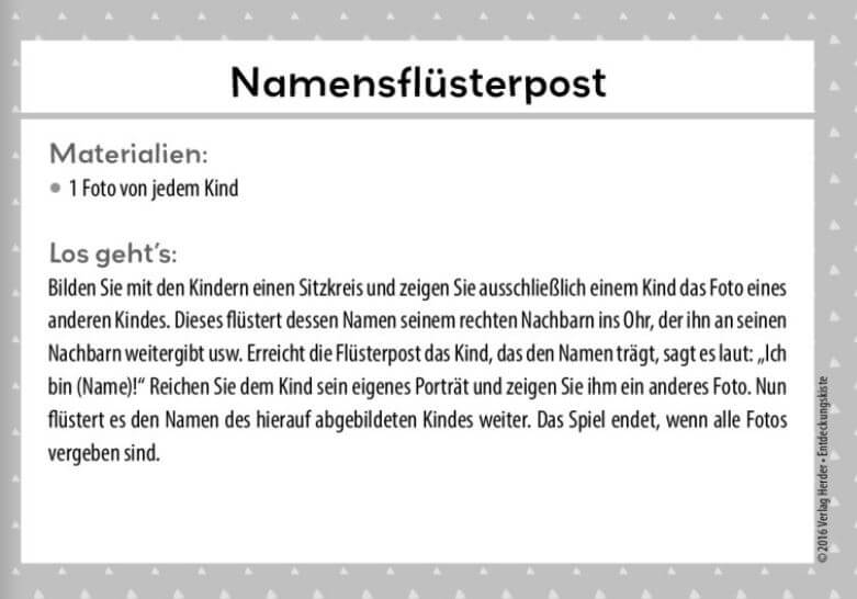(Nicht nur) für die Kita-Praxis, sondern auch für den Gebrauch zu Hause oder in verschiedenen Gruppenkonstellationen mit mehrsprachigen oder sich untereinander noch fremden Kindern, stellen wir Ihnen die Hosentaschenspiele zum Thema Kennenlernen des Herder Verlages vor. Im praktischen Format und mit wunderbaren kindgerechten Illustrationen, sind hier Spielklassiker zusammengestellt, die aus der Rubrik „Blitzideen: Alte Spiele neu entdeckt“ der Kita-Zeitschrift „Entdeckungskiste“ stammen. Von „Anna mag Ananas“ über „Hallo Nachbar“ und „Ribbel-Dibbel“ stehen Ihnen 32 Kennenlernspiele zur Auswahl, die kaum Utensilien bedürfen. Die Mitarbeiterinnen der LaNa haben allein vom Lesen schon viel Lust am baldigen Spiel mit den Nachbarn aus Polen und Tschechien bekommen. Sie auch?