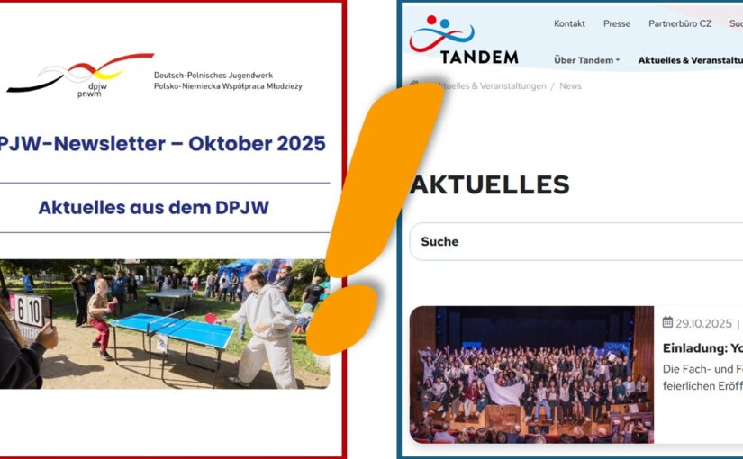 Liebe Aktive der grenzüberschreitenden Zusammenarbeit zwischen Deutschland und Polen bzw. Tschechien! Unsere Partner im Netzwerk der nachbarsprachigen Bildung, das Deutsch-Polnische Jugendwerk (DPJW) und Tandem – Koordinierungszentrum für deutsch-tschechischen Jugendaustausch, haben neue Informationen für Ihre grenzüberschreitenden Projektideen und Vorhaben veröffentlicht.